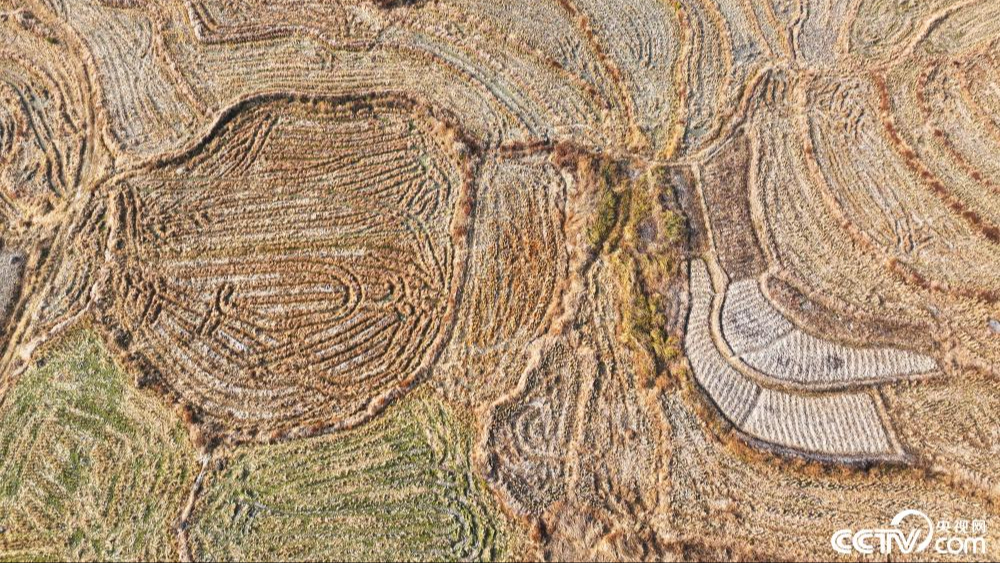 Terenurile de orez din oraşul Guilin, Regiunea Autonomă Guangxi Zhuang, se văd din aer ca nişte amprente ale pământului. În această iarnă, aproximativ o mie de mu (66,67 hectare) de orezării din satul Tangqian au intrat în perioadă de odihnă. Terenurile se intersectează şi formează modele parcă sculptate pe pământ, creând un peisaj deosebit.