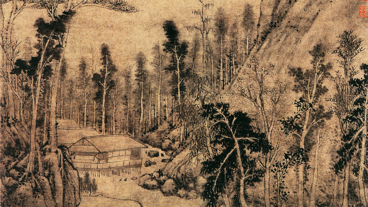 Înnoptând în munte la coliba maestrului meu, aştept în zadar pe prietenul meu, Ding